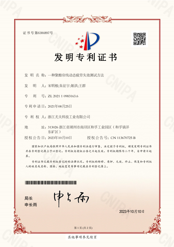發明專利證書一種紡絲噴油嘴及其操作方法