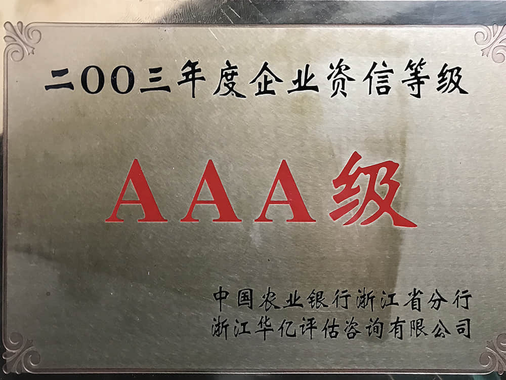 2003年度企業(yè)資信等級AAA級